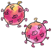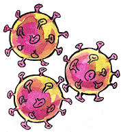 Virus Corona Covid-19 drei Trio gelb lila