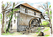 Mühle alte Fluehlenmuehle Wasserrad Gümmenen Vereinsausflug
