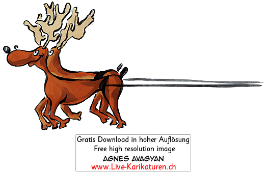 Rentier Elch Hirsch Schlitten ziehen Weihnachten Xmas Santa Claus Weihnachtsmann